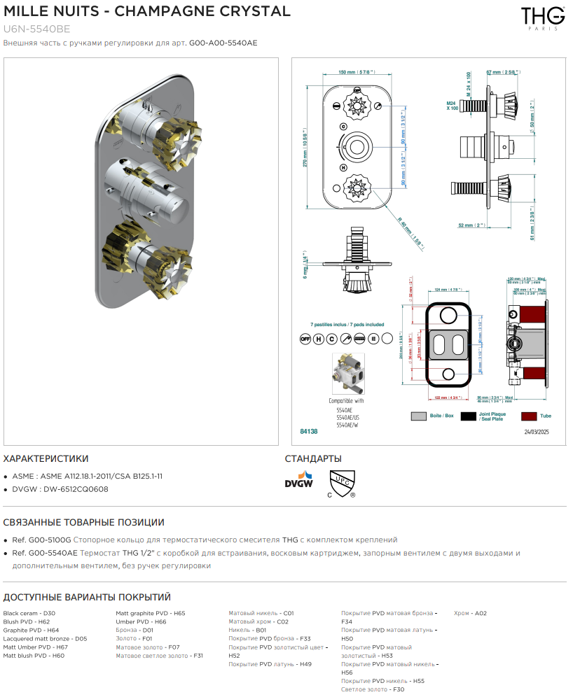 Внешняя часть с ручками THG Mille Nuits - Champagne crystal регулировки для арт. G00-A00-5540AE