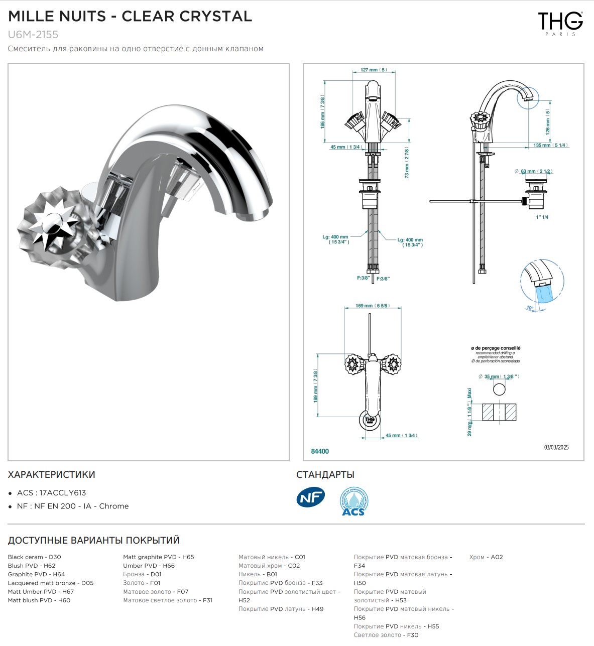 Смеситель для раковины THG Mille Nuits - Clear crystal на одно отверстие с донным клапаном коллекции Смесители THG Mille Nuits - Clear crystal можно купить по розничной цене в нашем шоу-руме в Москве по адресу ул. Дениса Давыдова, д. 4 или через наш интернет-магазин StudioArdo.