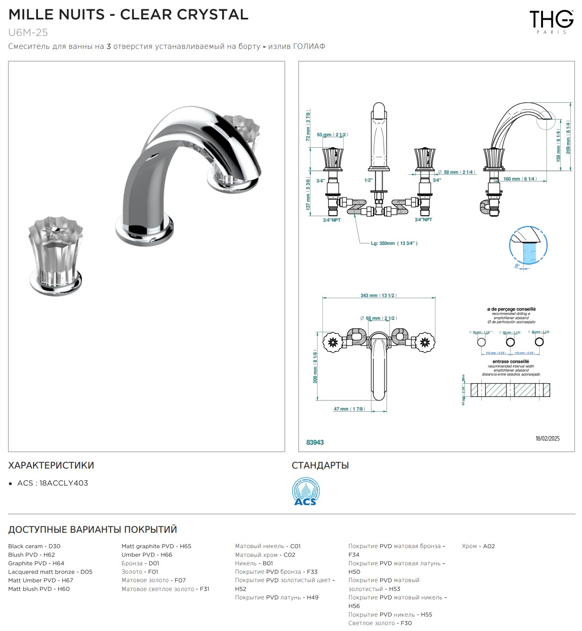 Смеситель для ванны THG Mille Nuits - Clear crystal на 3 отверстия устанавливаемый на борту - излив ГОЛИАФ коллекции Смесители THG Mille Nuits - Clear crystal можно купить по розничной цене в нашем шоу-руме в Москве по адресу ул. Дениса Давыдова, д. 4 или через наш интернет-магазин StudioArdo.
