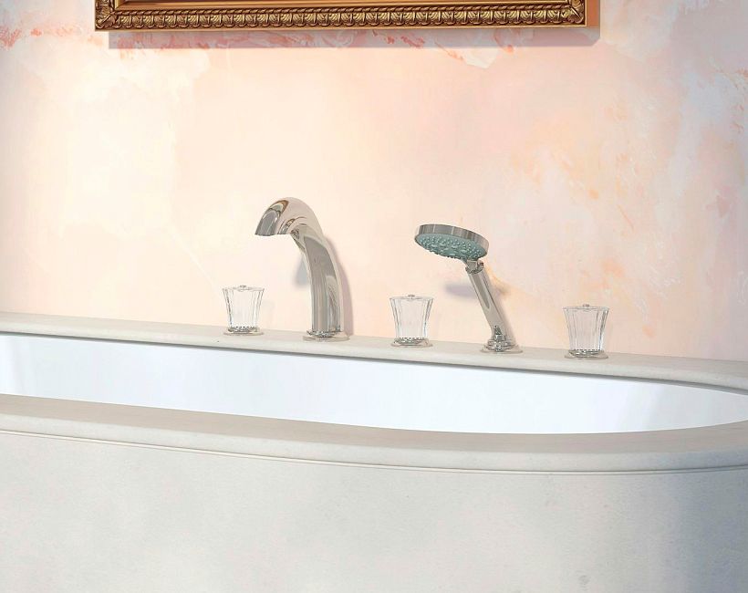 Смеситель для ванны THG Mille Nuits - Clear crystal на 3 отверстия устанавливаемый на борту - излив СУПЕР ГОЛИАФ