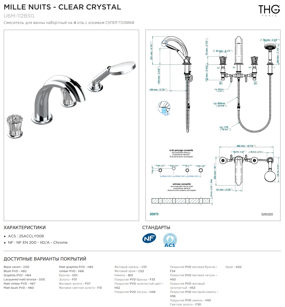 Смеситель для ванны THG Mille Nuits - Clear crystal набортный на 4 отв. с изливом СУПЕР ГОЛИАФ коллекции Смесители THG Mille Nuits - Clear crystal можно купить по розничной цене в нашем шоу-руме в Москве по адресу ул. Дениса Давыдова, д. 4 или через наш интернет-магазин StudioArdo.