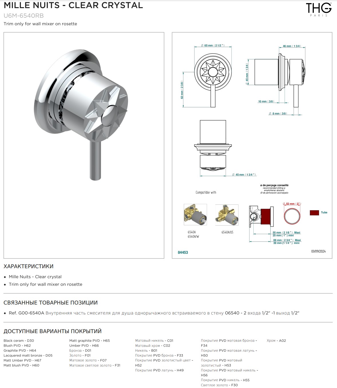 Внешняя часть смесителя THG Mille Nuits - Clear crystal для душа однорычажного встраиваемого в стену коллекции Смесители THG Mille Nuits - Clear crystal можно купить по розничной цене в нашем шоу-руме в Москве по адресу ул. Дениса Давыдова, д. 4 или через наш интернет-магазин StudioArdo.