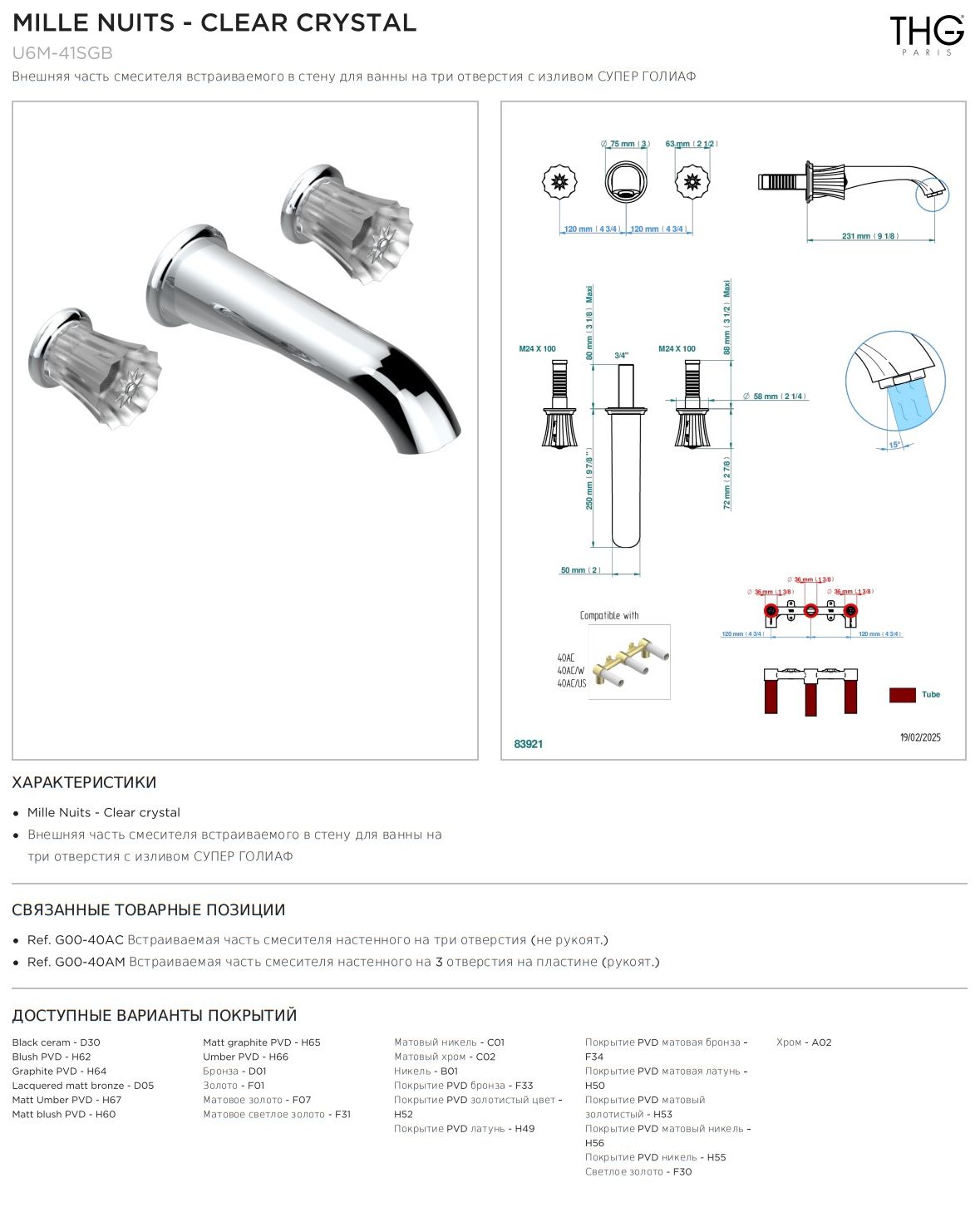 Внешняя часть смесителя THG Mille Nuits - Clear crystal встраиваемого в стену для ванны на три отверстия с изливом СУПЕР ГОЛИАФ коллекции Смесители THG Mille Nuits - Clear crystal можно купить по розничной цене в нашем шоу-руме в Москве по адресу ул. Дениса Давыдова, д. 4 или через наш интернет-магазин StudioArdo.