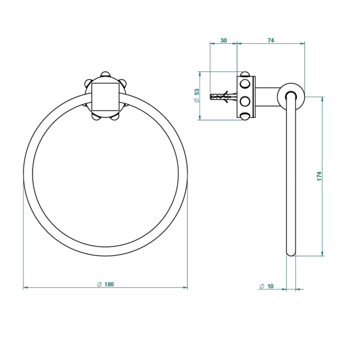 THG Mossi Полотенцедержатель - кольцо 18см., подвесной, цвет: хром/прозрачный хрусталь