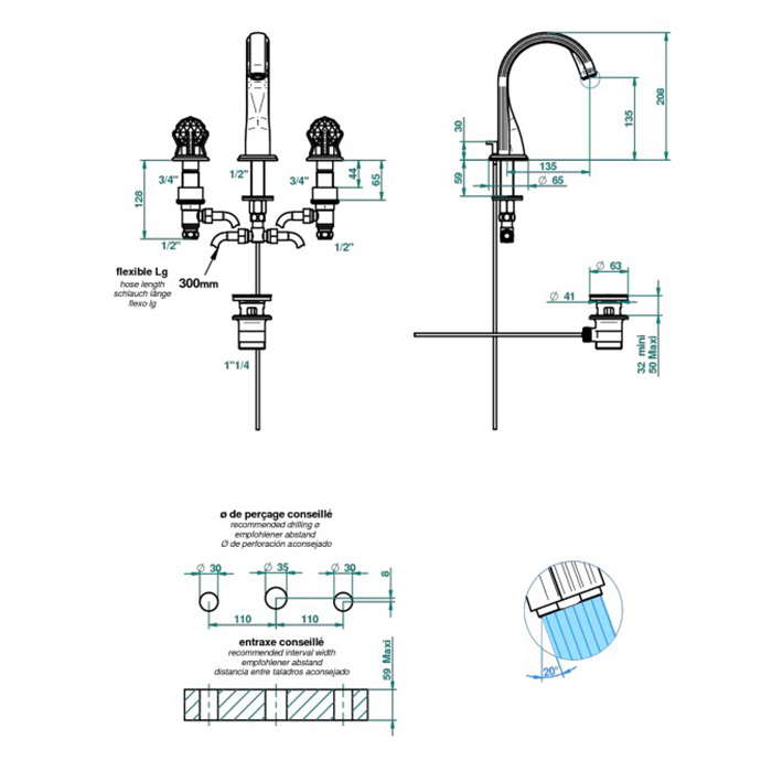 THG Najem Смеситель для раковины на 3 отверстия, с донным клапаном, цвет: полированное золото коллекции Najem можно купить по розничной цене в нашем шоу-руме в Москве по адресу ул. Дениса Давыдова, д. 4 или через наш интернет-магазин StudioArdo.