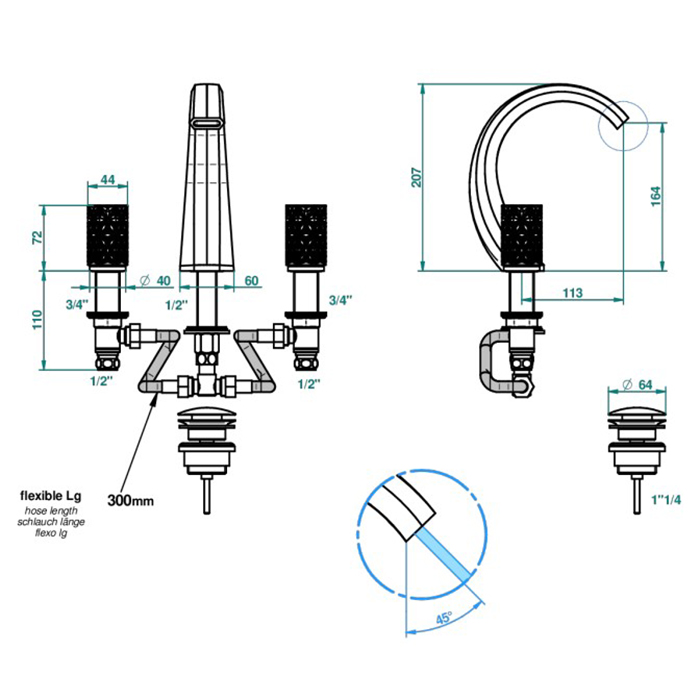 THG Nihal Porcelaine Ivoire Смеситель для раковины на 3 отверстия, с донным клапаном, цвет: Soft gold коллекции Nihal Porcelaine Ivoire можно купить по розничной цене в нашем шоу-руме в Москве по адресу ул. Дениса Давыдова, д. 4 или через наш интернет-магазин StudioArdo.