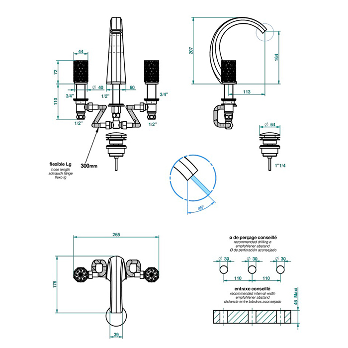 THG Nihal Porcelaine Verte Смеситель для раковины на 3 отверстия, с донным клапаном, цвет: Soft gold коллекции Nihal Porcelaine Verte можно купить по розничной цене в нашем шоу-руме в Москве по адресу ул. Дениса Давыдова, д. 4 или через наш интернет-магазин StudioArdo.