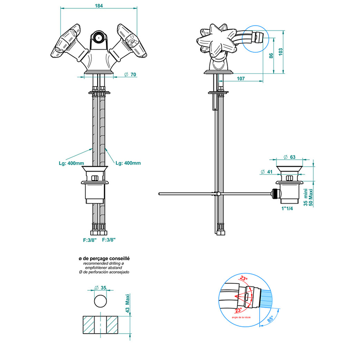THG Oceania Смеситель для биде, 1 отв., цвет: хром/прозрачный хрусталь