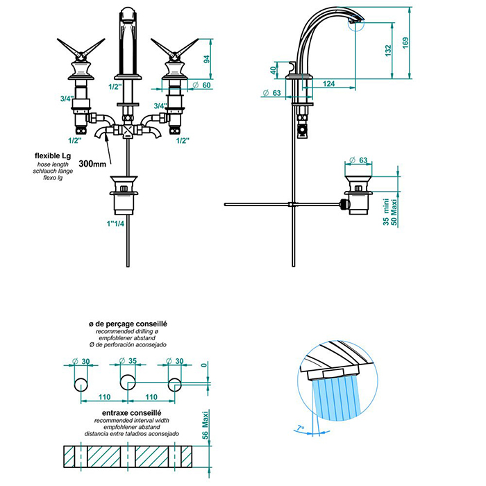 THG Papillon Смеситель для раковины, 3 отв., цвет: хром/прозрачный хрусталь