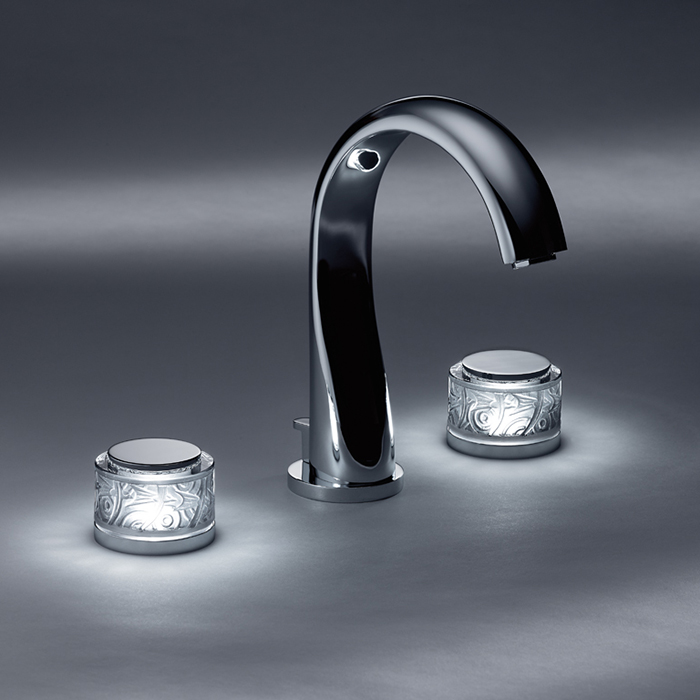 THG Paradise Смеситель для раковины на 3 отверстия, ручки с подсветкой, с донным клапаном, цвет: хром коллекции Смесители THG Paradise можно купить по розничной цене в нашем шоу-руме в Москве по адресу ул. Дениса Давыдова, д. 4 или через наш интернет-магазин StudioArdo.