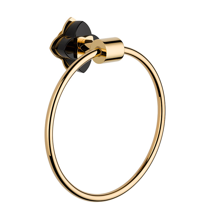 THG Pétale de cristal noir Полотенцедержатель - кольцо 18см., подвесной, цвет: золото/черный хрусталь