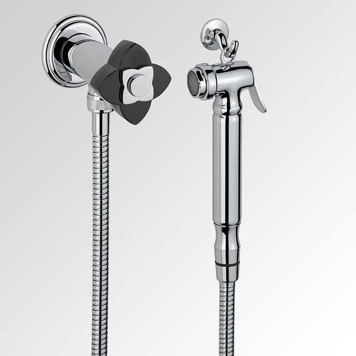 THG Petale de Cristal noir Гигиенический душ, цвет: хром/черный хрусталь коллекции Смесители THG Petale de Cristal noir можно купить по розничной цене в нашем шоу-руме в Москве по адресу ул. Дениса Давыдова, д. 4 или через наш интернет-магазин StudioArdo.