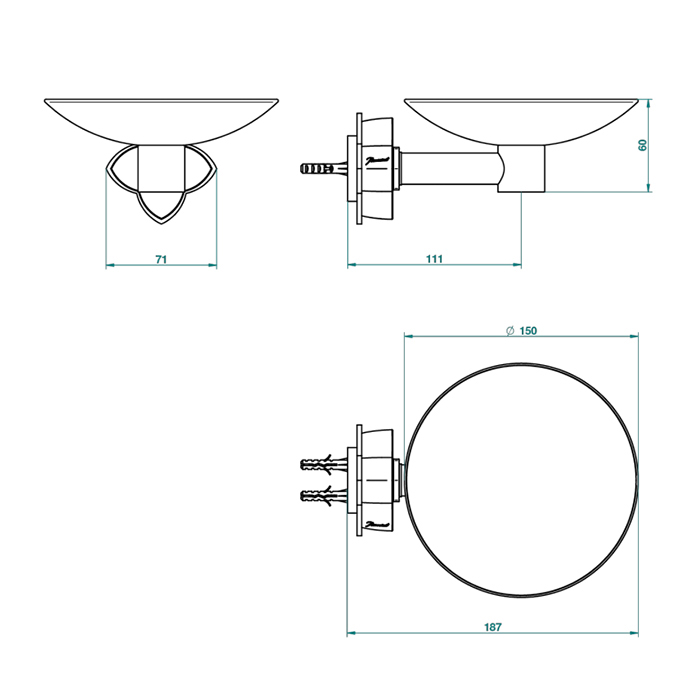 THG Petale de Cristal noir Мыльница металлическая ø 15см., подвесная, цвет: хром/черный хрусталь