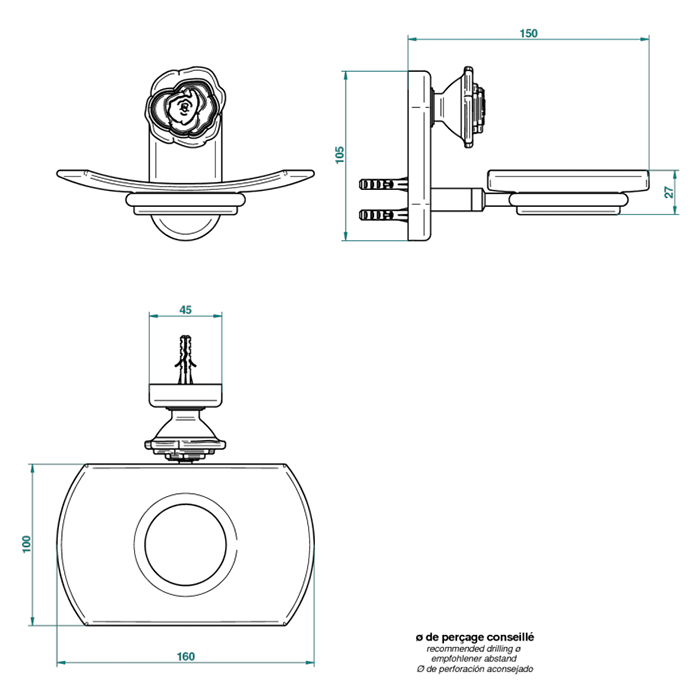 THG Rose Мыльница стеклянная, подвесная, цвет: золото/розовый