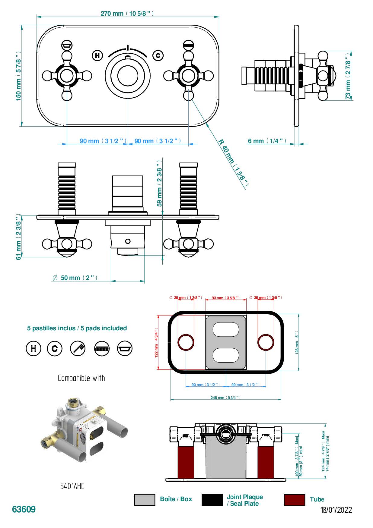 Накладка THG Charleston с ручкой регулировки температуры и двумя маховиками для термостатического смесителя с горизонтальной установкой