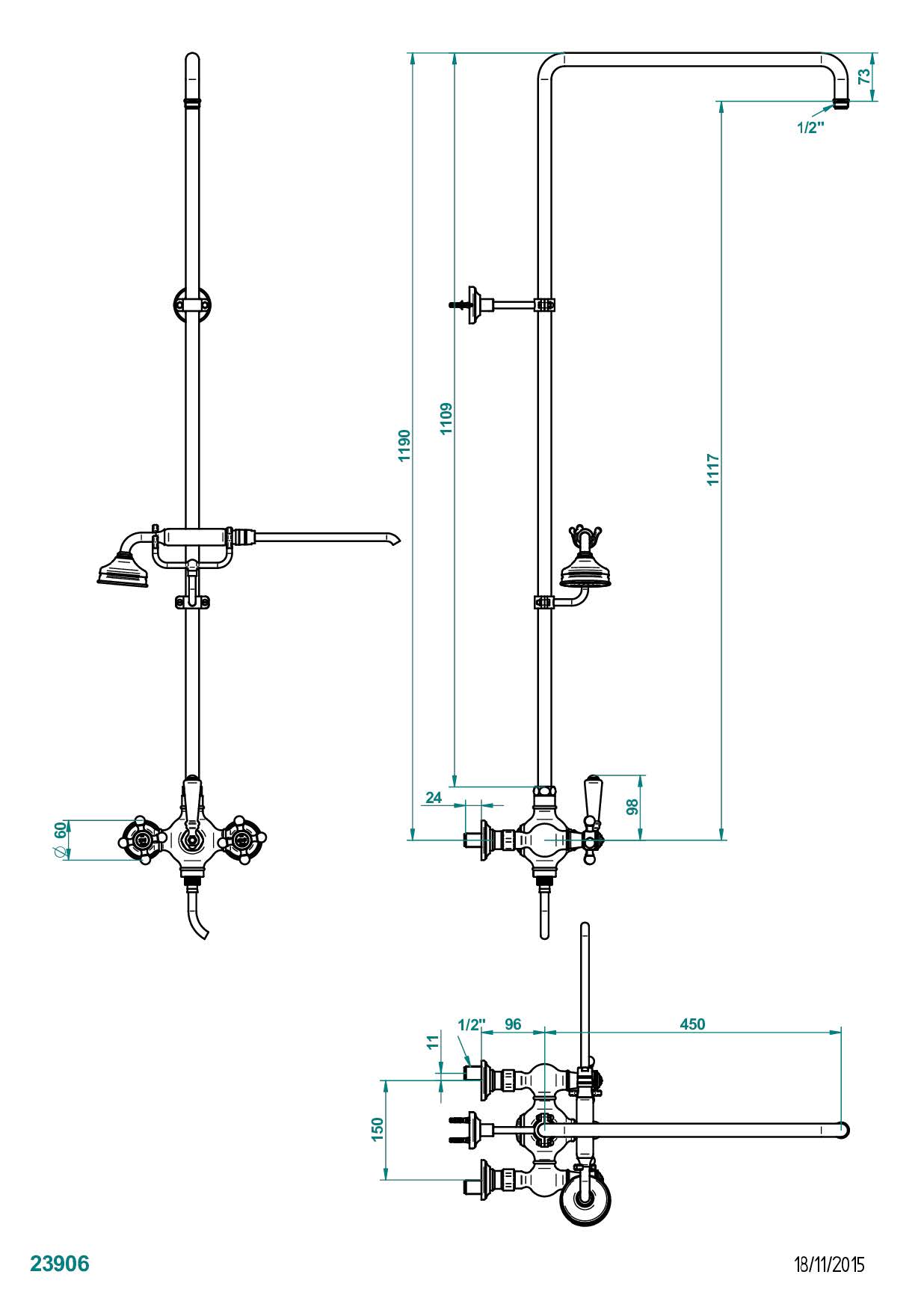 Смеситель THG Charleston для душа встраиваемый в стену / переключатель / открытая душевая колонна / душ "телефон", шланг и настенные рожки для лейки - межцентровое расстояние 150 мм. (без верхней лейки) коллекции Смесители THG Charleston можно купить по розничной цене в нашем шоу-руме в Москве по адресу ул. Дениса Давыдова, д. 4 или через наш интернет-магазин StudioArdo.