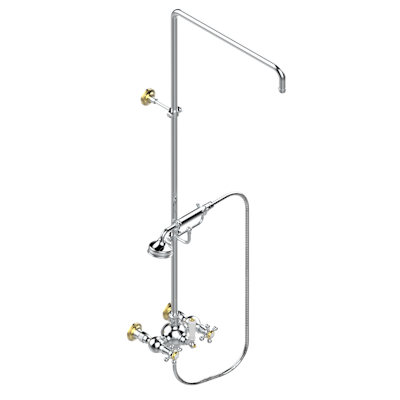 Смеситель THG Charleston для душа встраиваемый в стену / переключатель / открытая душевая колонна / душ "телефон", шланг и настенные рожки для лейки - межцентровое расстояние 150 мм. (без верхней лейки)