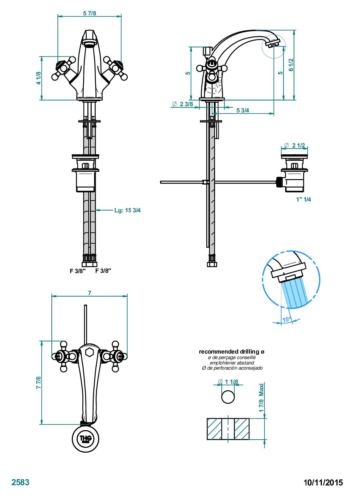 Смеситель THG Charleston для раковины на одно отверстие с донным клапаном