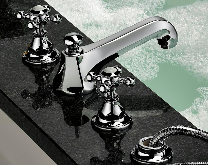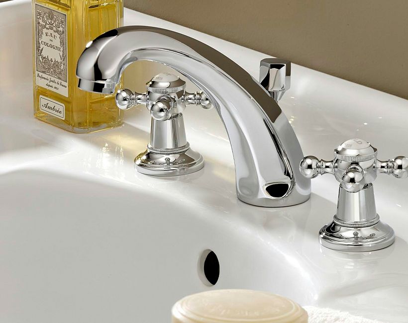 Смеситель THG Charleston для раковины на три отверстия устанавливаемый на борту с донным клапаном коллекции Смесители THG Charleston можно купить по розничной цене в нашем шоу-руме в Москве по адресу ул. Дениса Давыдова, д. 4 или через наш интернет-магазин StudioArdo.