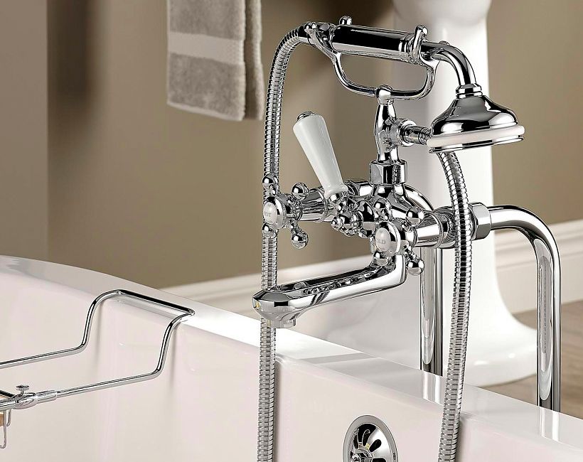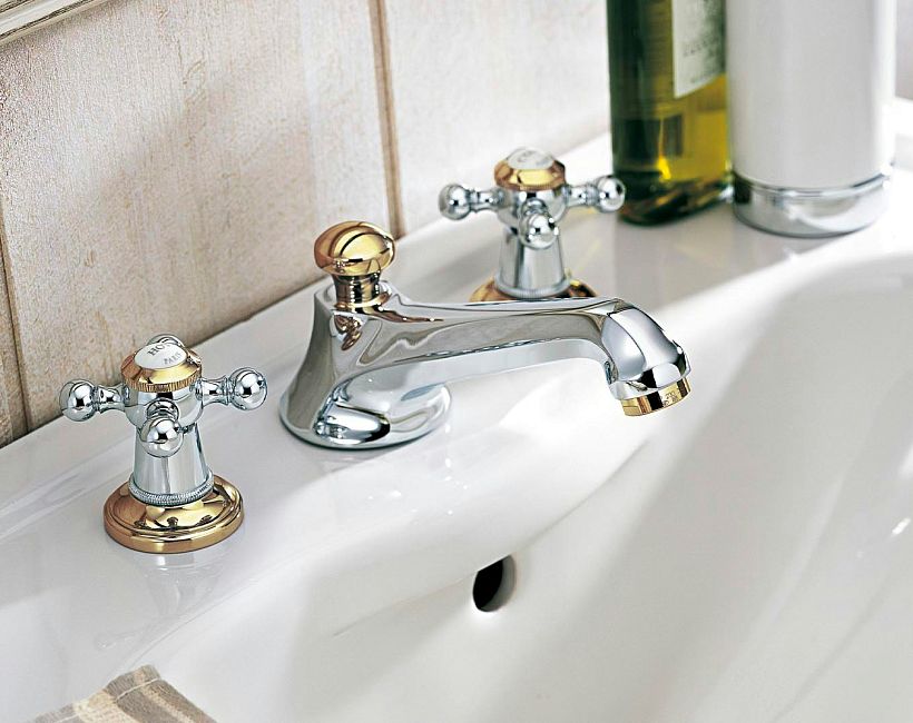 Смеситель THG Charleston для раковины на три отверстия устанавливаемый на борту с донным клапаном
