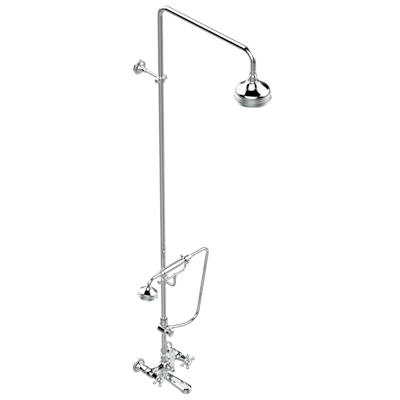 Смеситель THG Charleston настенный для ванны/душа 1/2" с расстоянием между вентилями 150 мм (+ или - 22 мм), с душевой колонной с переключателем, настенной скобой, ручным душем, шлангом 1.5 м, держателем на стержне и 120 мм верхним душем