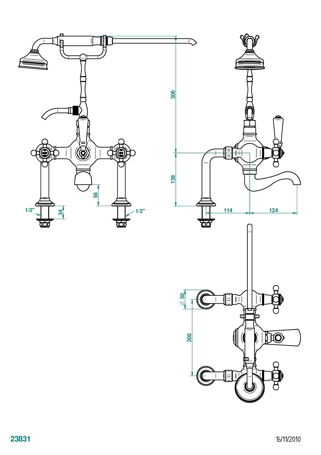 Смеситель THG Charleston "телефон" для ванны/душа устанавливаемый на борту / переключатель - 200 между центрами коллекции Смесители THG Charleston можно купить по розничной цене в нашем шоу-руме в Москве по адресу ул. Дениса Давыдова, д. 4 или через наш интернет-магазин StudioArdo.