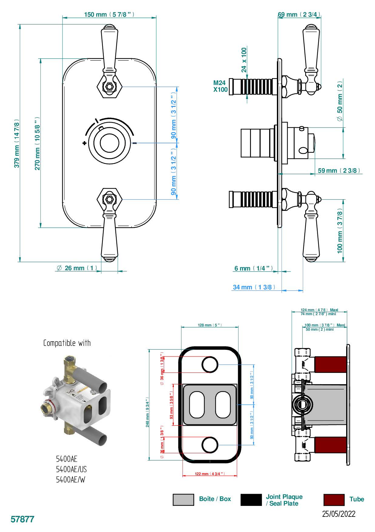 Накладка THG 1900 a manettes с ручкой регулировки температуры и двумя маховиками для термостатического смесителя 5400AE