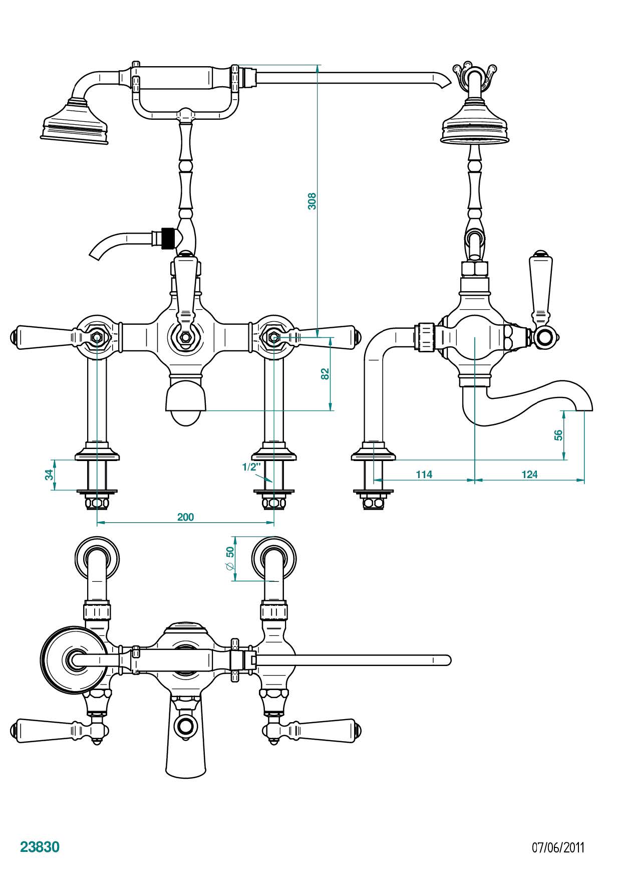 Смеситель THG 1900 a manettes "телефон" для ванны/душа устанавливаемый на борту / переключатель - 200 между центрами