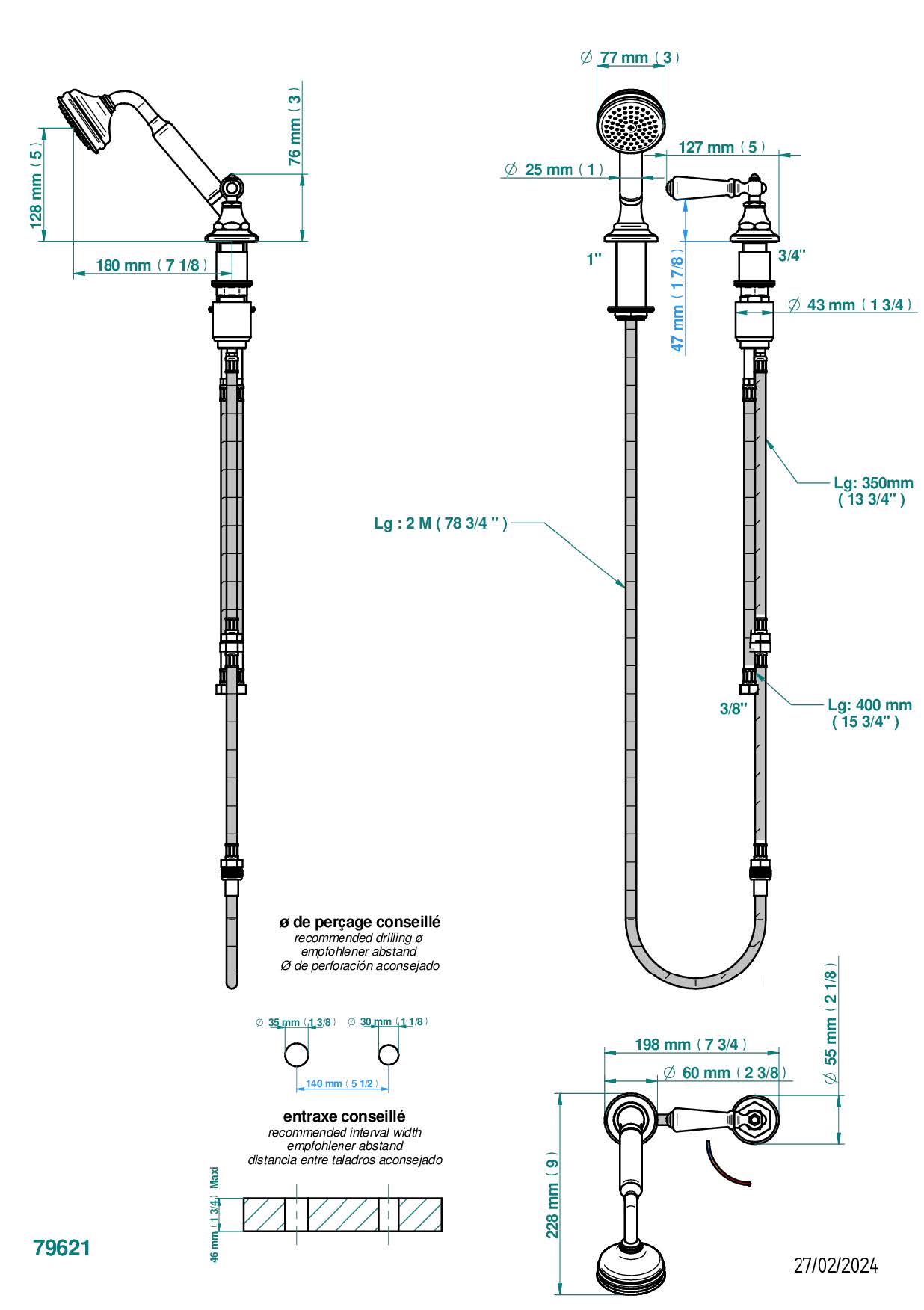 Смеситель THG 1900 a manettes устанавливаемый на борту с ручным душем с ручкой одновременной регулировки – потока/температуры