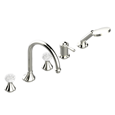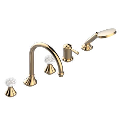 Комплект THG Camelia Clear crystal для ванны/душа на борт на 5 отверстий: кран большого размера, 2 рычага управления 3/4" и ручной душ со смесителем