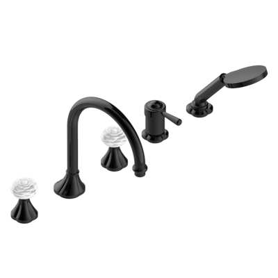 Комплект THG Camelia Clear crystal для ванны/душа на борт на 5 отверстий: кран большого размера, 2 рычага управления 3/4" и ручной душ со смесителем коллекции Смесители THG Camelia Clear crystal можно купить по розничной цене в нашем шоу-руме в Москве по адресу ул. Дениса Давыдова, д. 4 или через наш интернет-магазин StudioArdo.