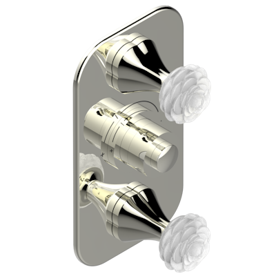Накладка THG Camelia Clear crystal с ручкой регулировки температуры и двумя маховиками для термостатического смесителя 5400AE коллекции Смесители THG Camelia Clear crystal можно купить по розничной цене в нашем шоу-руме в Москве по адресу ул. Дениса Давыдова, д. 4 или через наш интернет-магазин StudioArdo.