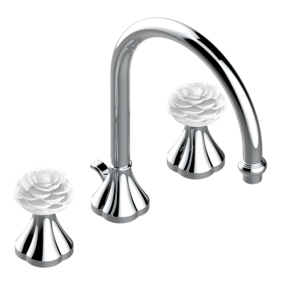 Смеситель для раковины THG Camelia Clear crystal на три отверстия устанавливаемый на борту с донным клапаном коллекции Смесители THG Camelia Clear crystal можно купить по розничной цене в нашем шоу-руме в Москве по адресу ул. Дениса Давыдова, д. 4 или через наш интернет-магазин StudioArdo.