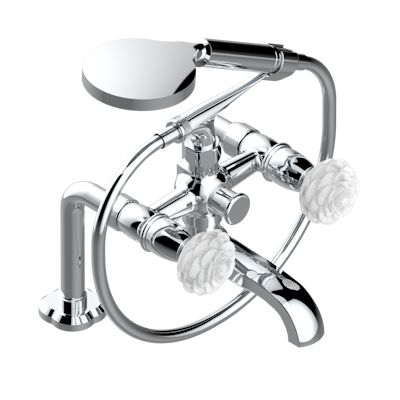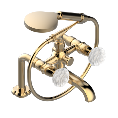 Смеситель THG Camelia Clear crystal для ванны/душа устанавливаемый на борту на два отверстия с душем и шлангом - 150 мм между центрами