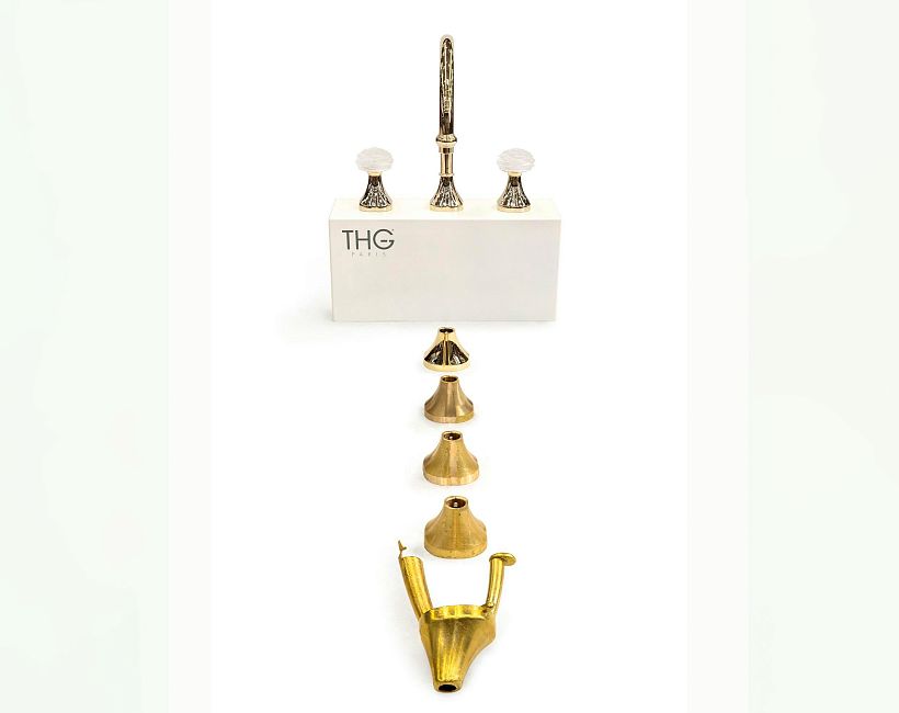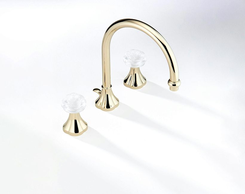 Смеситель THG Camelia Clear crystal с прогрессивным картриджем для раковины на 2 отверстия с краном, без донного клапана коллекции Смесители THG Camelia Clear crystal можно купить по розничной цене в нашем шоу-руме в Москве по адресу ул. Дениса Давыдова, д. 4 или через наш интернет-магазин StudioArdo.