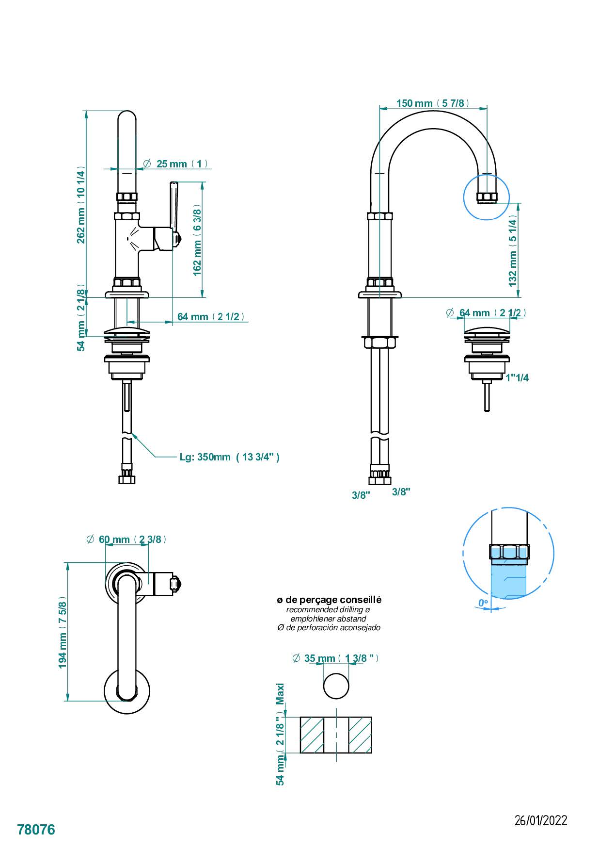 Смеситель THG Club Saint-Germain для раковины однорычажный с донным клапаном