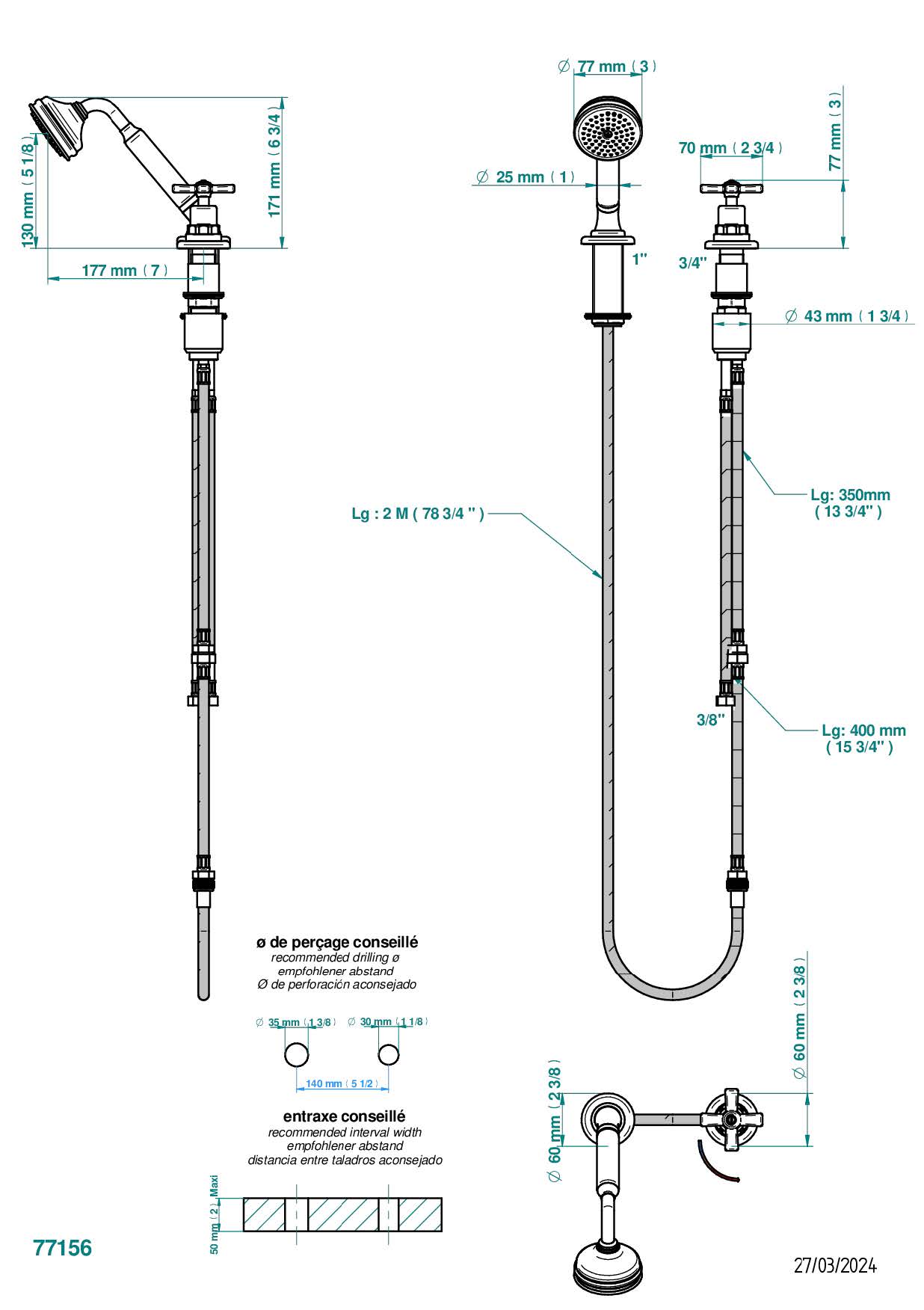 Смеситель THG Club Saint-Germain на борт ванны с ручным душем с ручкой одновременной регулировки – потока/температуры