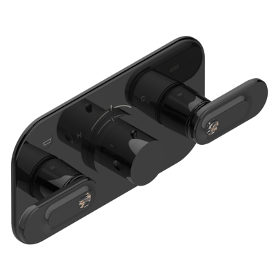 Накладка THG Corvair Portoro with lever с ручкой регулировки температуры и двумя маховиками для термостатического смесителя с горизонтальной установкой коллекции Смесители THG Corvair Portoro with lever можно купить по розничной цене в нашем шоу-руме в Москве по адресу ул. Дениса Давыдова, д. 4 или через наш интернет-магазин StudioArdo.