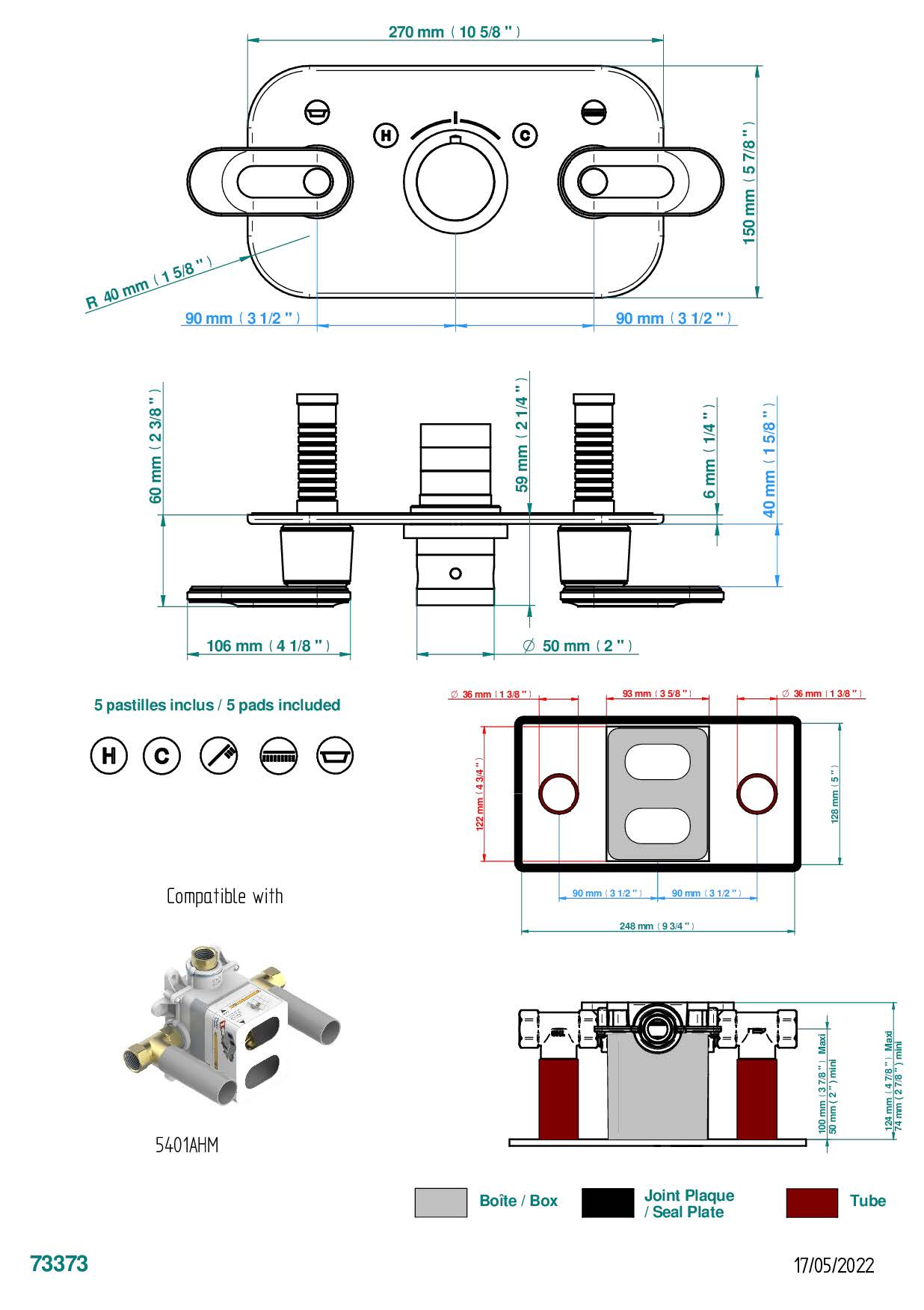 Накладка THG Corvair Portoro with lever с ручкой регулировки температуры и двумя маховиками для термостатического смесителя с горизонтальной установкой