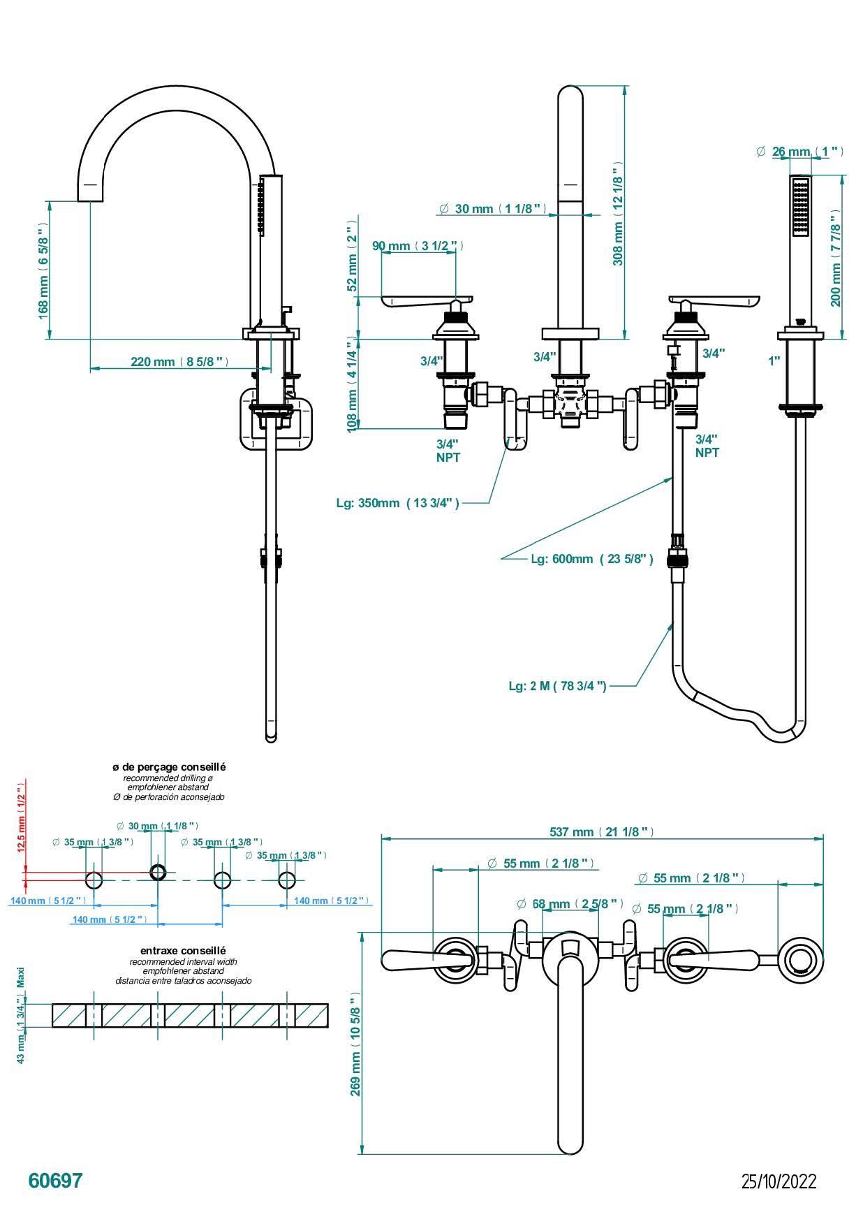 Смеситель для ванны THG Dean на 4 отв. с высоким изливом СУПЕР ГОЛИАФ коллекции Смесители THG Dean можно купить по розничной цене в нашем шоу-руме в Москве по адресу ул. Дениса Давыдова, д. 4 или через наш интернет-магазин StudioArdo.