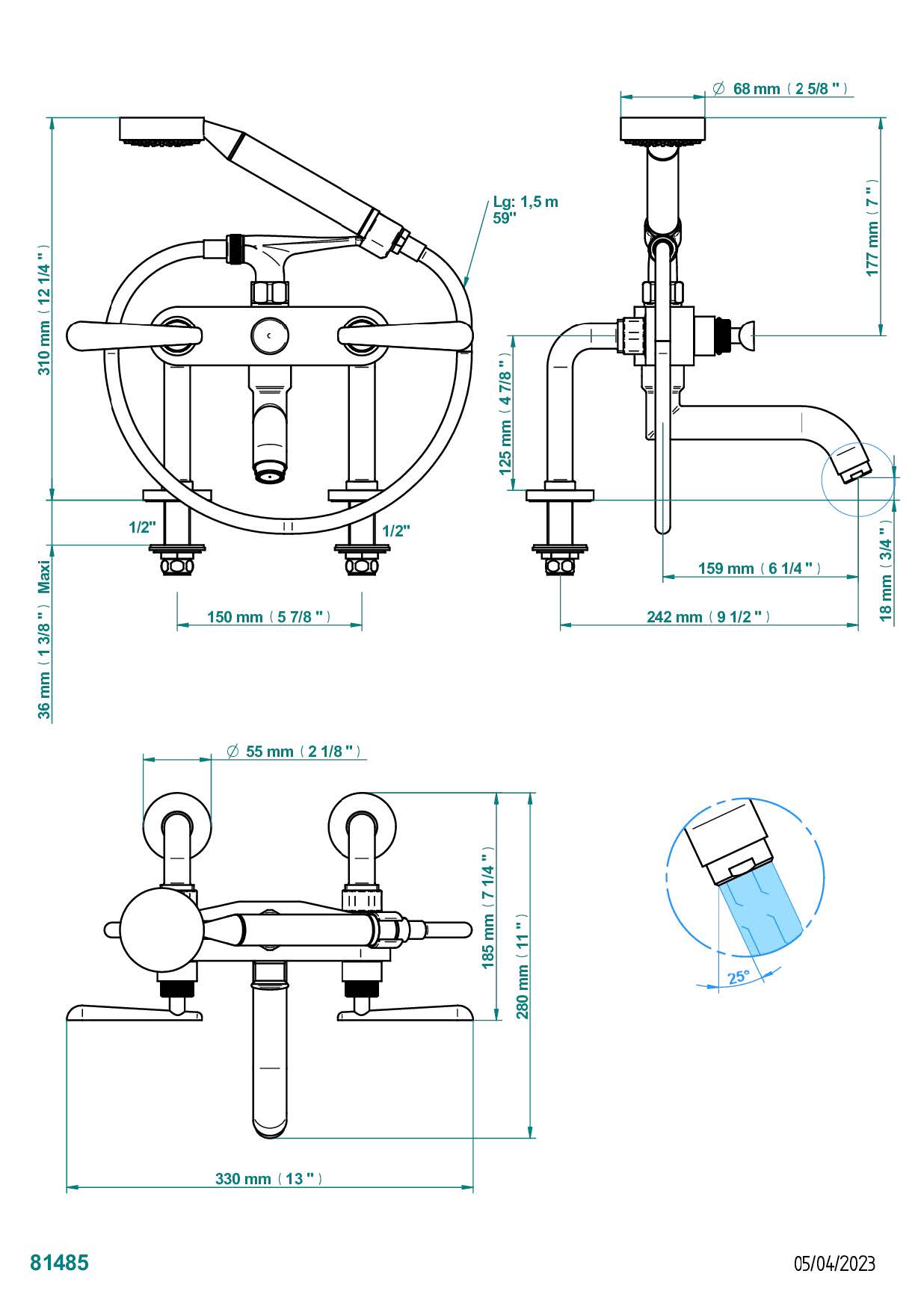 Смеситель THG Dean для ванны/душа устанавливаемый на борту на два отверстия с душем и шлангом - 150 мм между центрами коллекции Смесители THG Dean можно купить по розничной цене в нашем шоу-руме в Москве по адресу ул. Дениса Давыдова, д. 4 или через наш интернет-магазин StudioArdo.