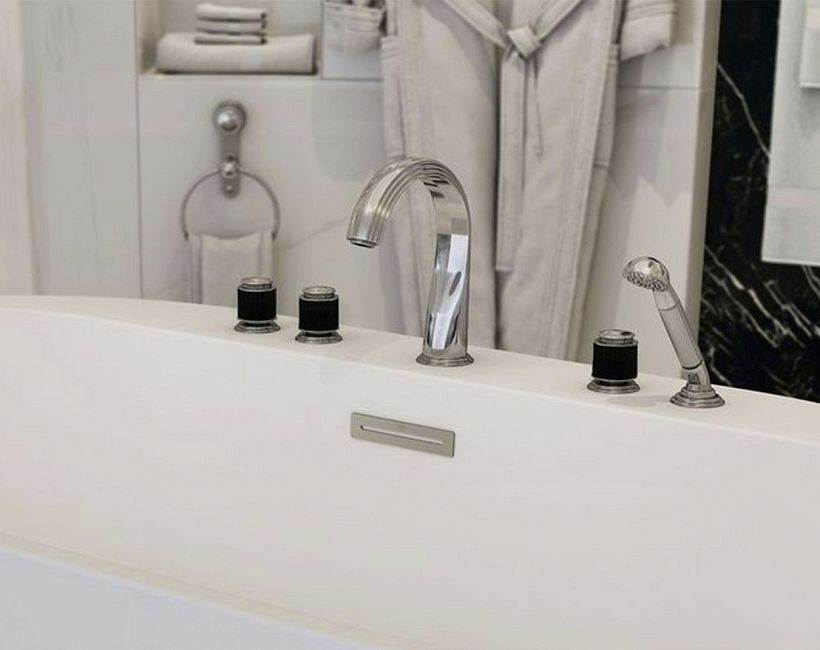 Накладка THG Jaipur Black Onyx с ручкой регулировки температуры и двумя маховиками для термостатического смесителя 5400AE коллекции Смесители THG Jaipur Black Onyx можно купить по розничной цене в нашем шоу-руме в Москве по адресу ул. Дениса Давыдова, д. 4 или через наш интернет-магазин StudioArdo.