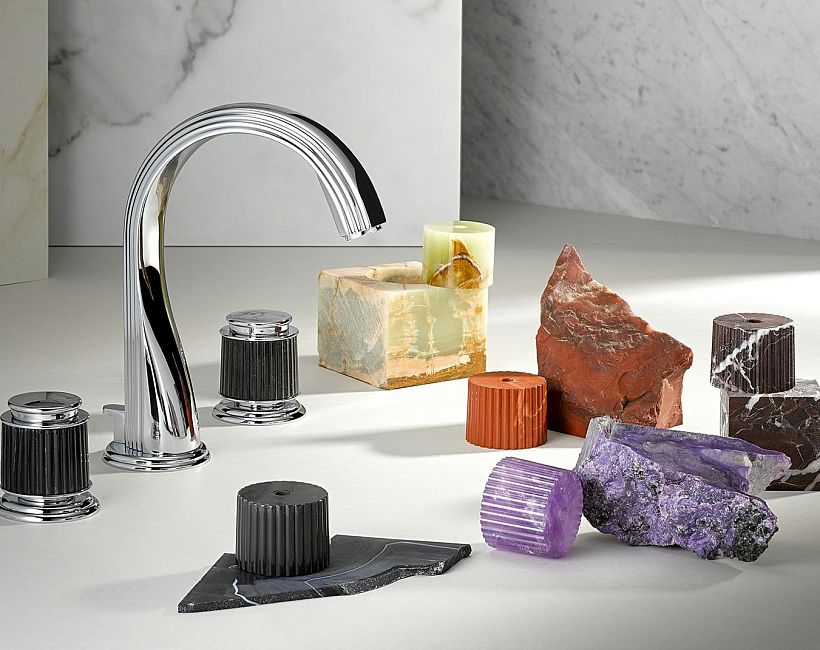 Накладка THG Jaipur Black Onyx с ручкой регулировки температуры и двумя маховиками для термостатического смесителя 5400AE