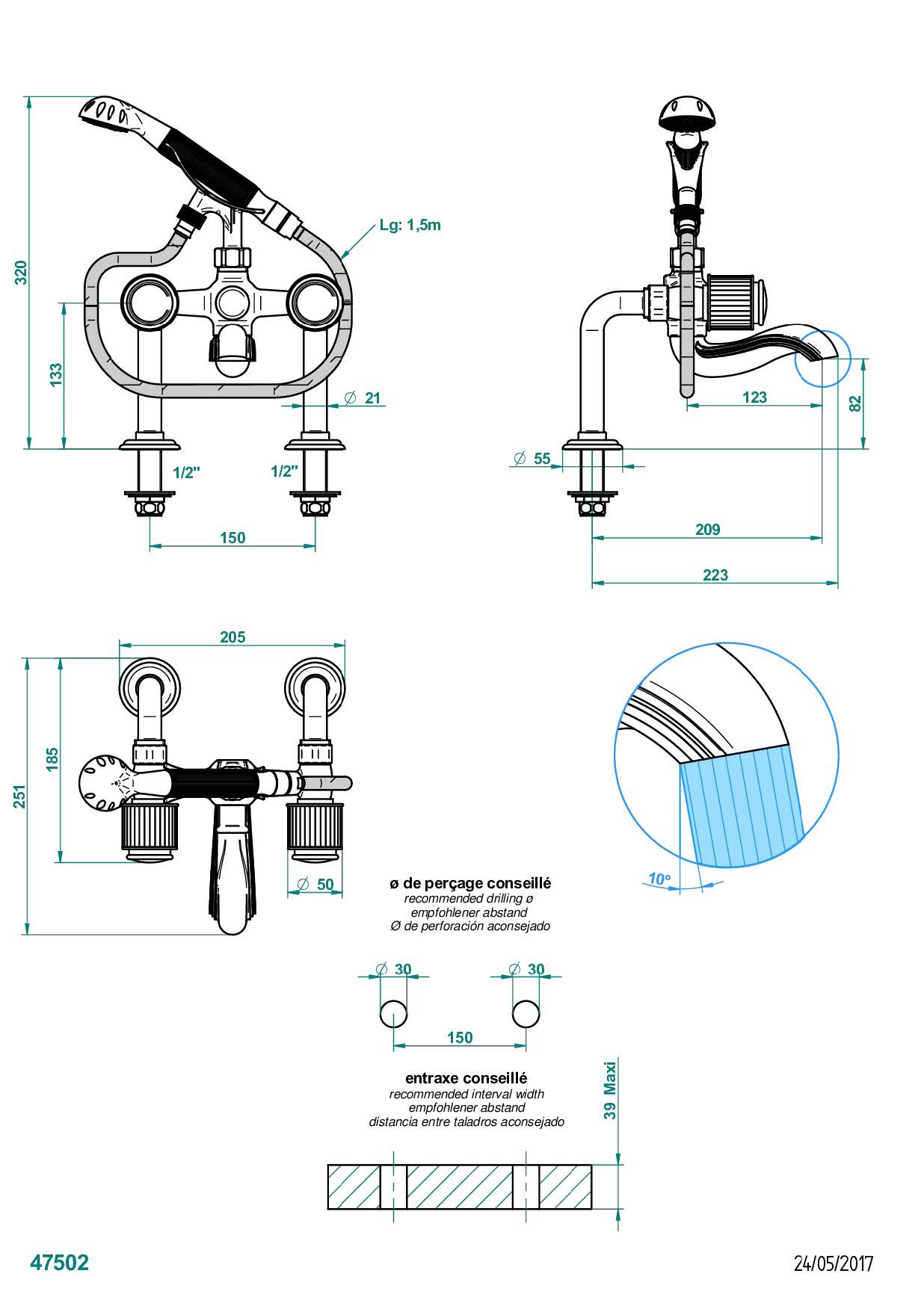 Смеситель THG Jaipur Black Onyx для ванны/душа устанавливаемый на борту на два отверстия с душем и шлангом - 150 мм между центрами коллекции Смесители THG Jaipur Black Onyx можно купить по розничной цене в нашем шоу-руме в Москве по адресу ул. Дениса Давыдова, д. 4 или через наш интернет-магазин StudioArdo.