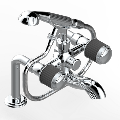 Смеситель THG Jaipur Black Onyx для ванны/душа устанавливаемый на борту на два отверстия с душем и шлангом - 150 мм между центрами