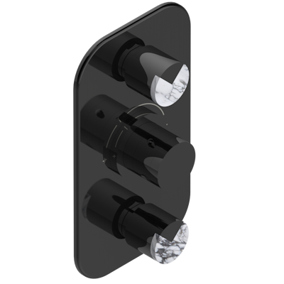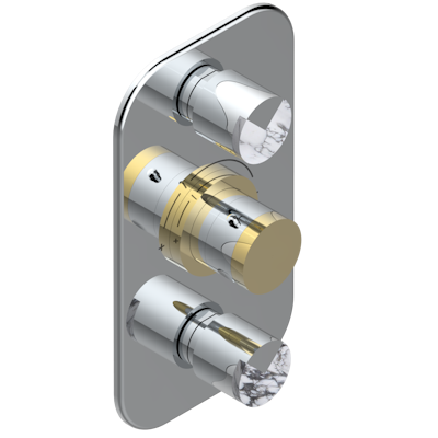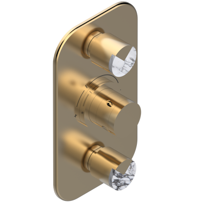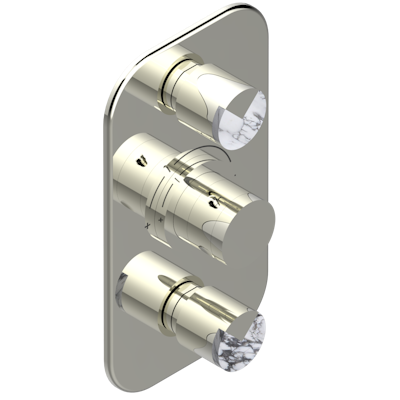 Накладка THG Le 9 Howlite с ручкой регулировки температуры и двумя маховиками для термостатического смесителя 5400AE коллекции Смесители THG Le 9 Howlite можно купить по розничной цене в нашем шоу-руме в Москве по адресу ул. Дениса Давыдова, д. 4 или через наш интернет-магазин StudioArdo.