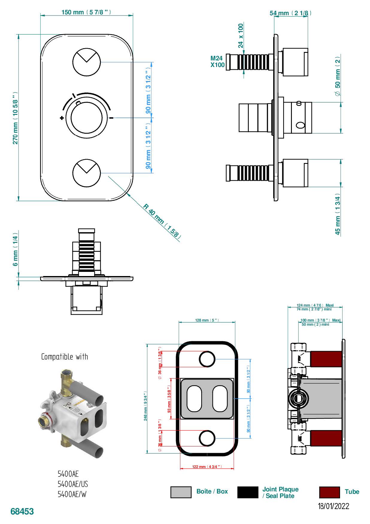 Накладка THG Le 9 Howlite с ручкой регулировки температуры и двумя маховиками для термостатического смесителя 5400AE
