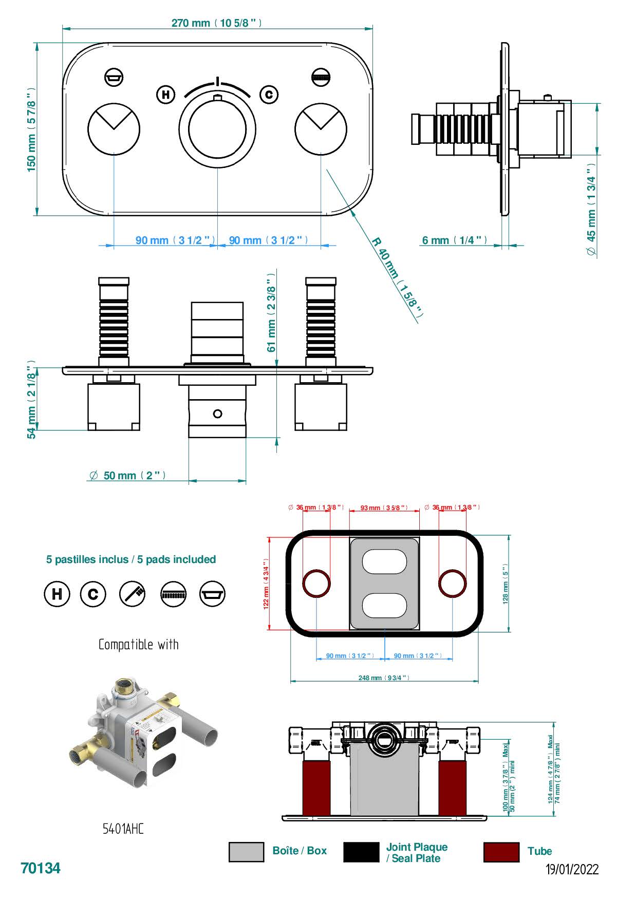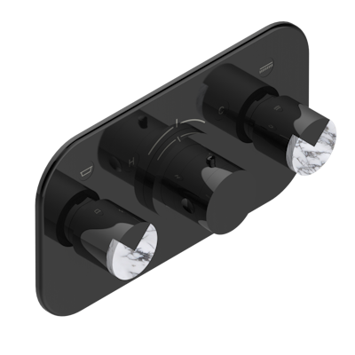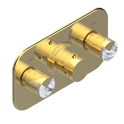 Накладка THG Le 9 Howlite с ручкой регулировки температуры и двумя маховиками для термостатического смесителя с горизонтальной установкой