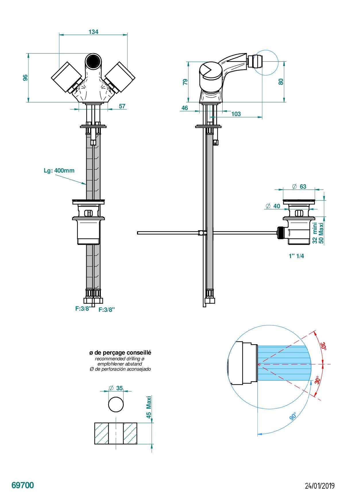 Смеситель для биде THG Le 9 Howlite на одно отверстие с поворотным аэратором и донным клапаном