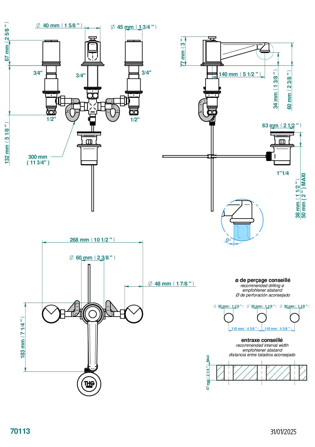 Смеситель для раковины THG Le 9 Howlite на три отверстия устанавливаемый на борту с донным клапаном